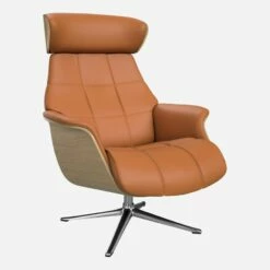 Habitat Fauteuil En Chêne Et Cuir Savoy – Marron Cognac – Pied Aluminium