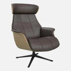 Habitat Fauteuil En Chêne Et Cuir Savoy – Noir Obsidienne – Pied Aluminium