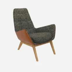 Habitat Fauteuil En Tissu Alba Gris Nuageet Cuir Vintage – Pieds Chêne