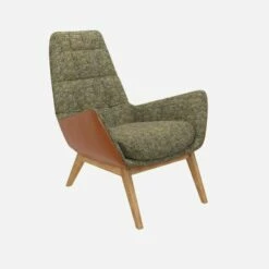 Habitat Fauteuil En Tissu Alba Vert Orage Et Cuir Vintage – Pieds Chêne