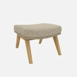 Habitat Repose-pieds En Tissu Lucca – Blanc Mastic – Pieds Chêne