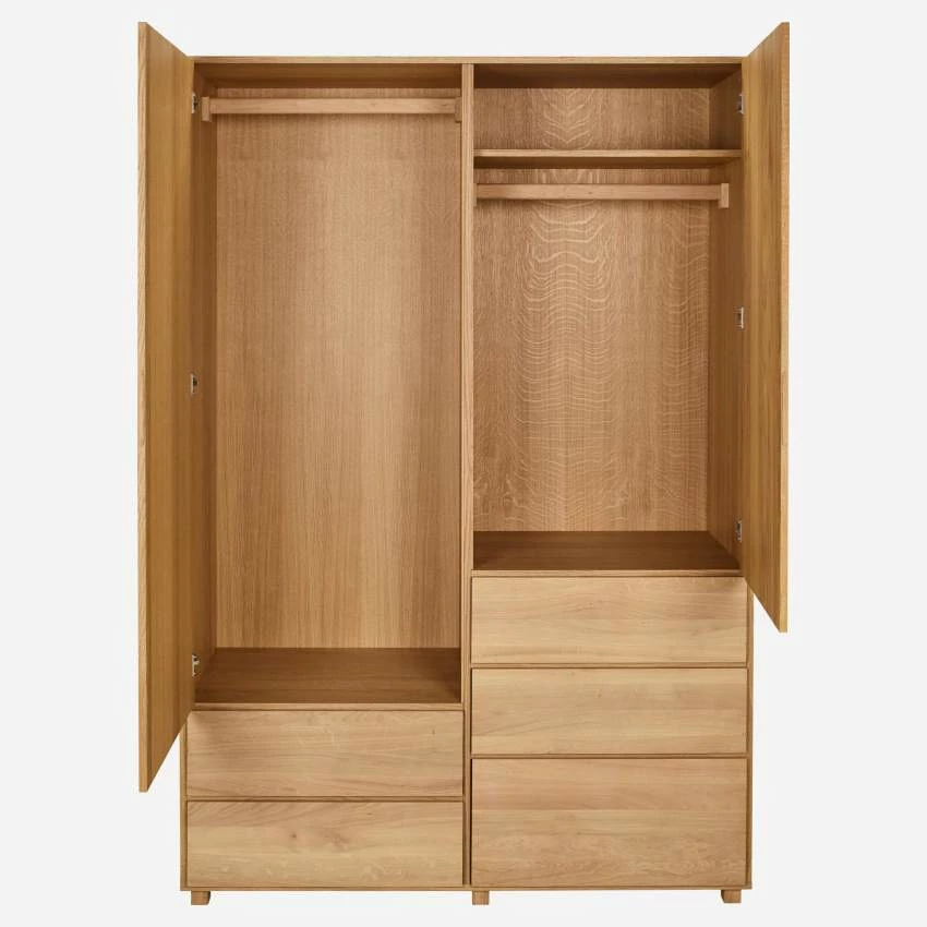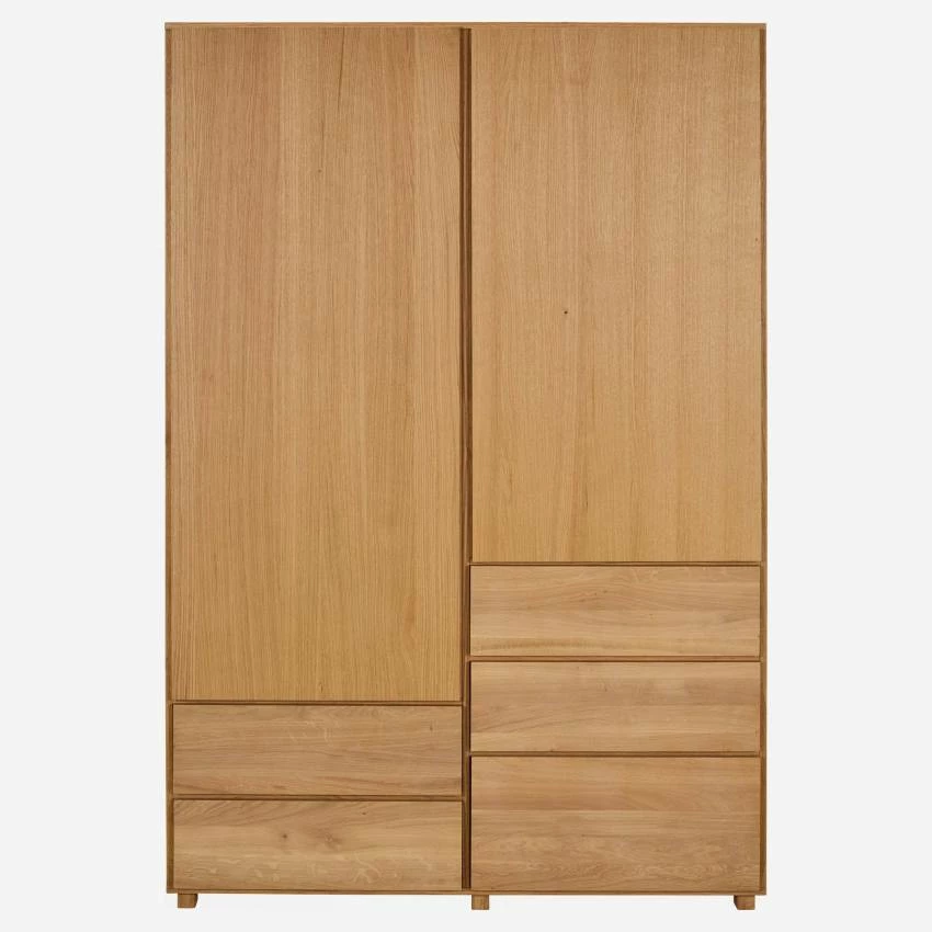 L’armoire Hanita est en chêne. Elle possède 2 placards penderies de tailles différentes ainsi que 5 tiroirs. Elle optimise votre espace en multipliant les rangements. Parfaite dans une chambre, elle vous aide à garder un intérieur bien ordonné.