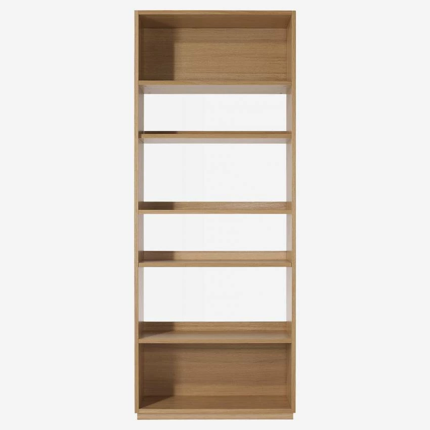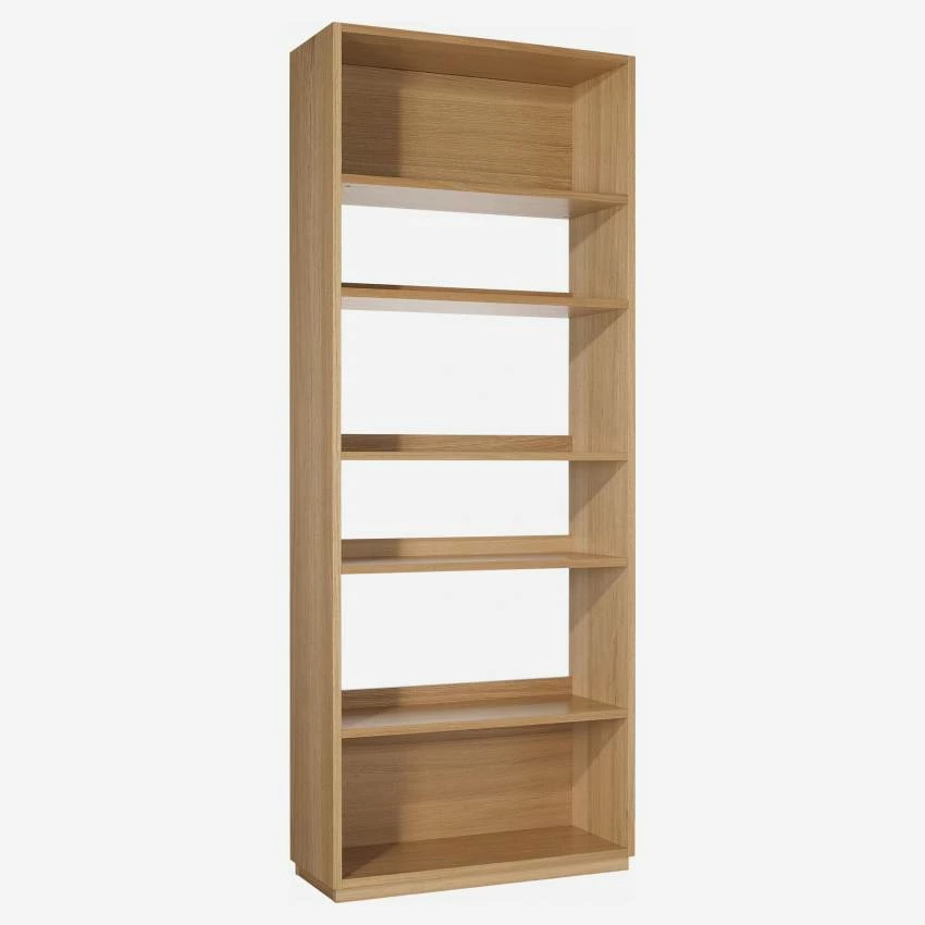 Cette élégante bibliothèque Kuda mesure 224 cm de hauteur et 88 cm de largeur. Elle dispose de 5 étagères dont 2 réglables. Les parties ouvertes sont terminées par des butoirs, pour empêcher vos livres ou vos objets de décoration de tomber.