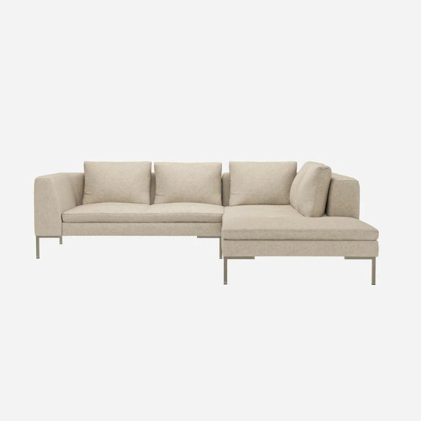 La gamme de mobilier Montino adopte une conception très aérienne. Cette collection propose des canapés de 2 ou 3 places, des méridiennes, des repose-pieds mais aussi des accessoires comme des coussins ou des repose-têtes. Montino est reconnaissable par ses assises rectilignes reposant sur des pieds en métal très fin. Chic et élégante, cette collection trouve son inspiration des lofts new-yorkais et de la tendance minimaliste.