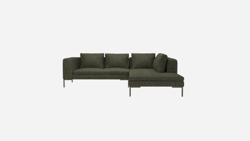 Le canapé 2 places avec méridienne droite Montino en tissu Lucca vert lichen invite à la détente avec son assise moelleuse et ses accoudoirs hauts. Classiques et élégantes, ses lignes élancées et son design intemporel en feront la pièce maîtresse de votre salon.