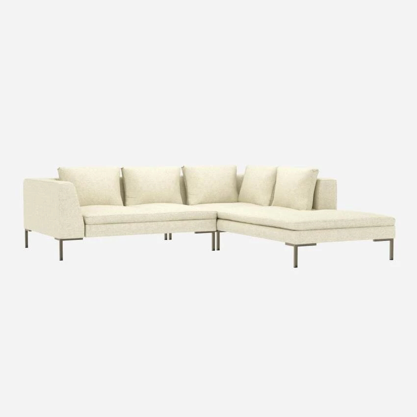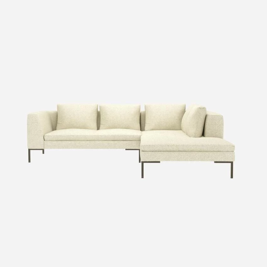 Le canapé 2 places avec méridienne droite Montino en tissu Venezia blanc craie invite à la détente avec son assise moelleuse et ses accoudoirs hauts. Classiques et élégantes, ses lignes élancées et son design intemporel en feront la pièce maîtresse de votre salon.