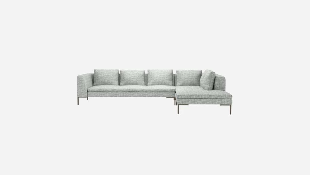 Le canapé 3 places avec méridienne droite Montino en tissu Alba gris brume invite à la détente avec son assise moelleuse et ses accoudoirs hauts. Classiques et élégantes, ses lignes élancées et son design intemporel en feront la pièce maîtresse de votre salon.