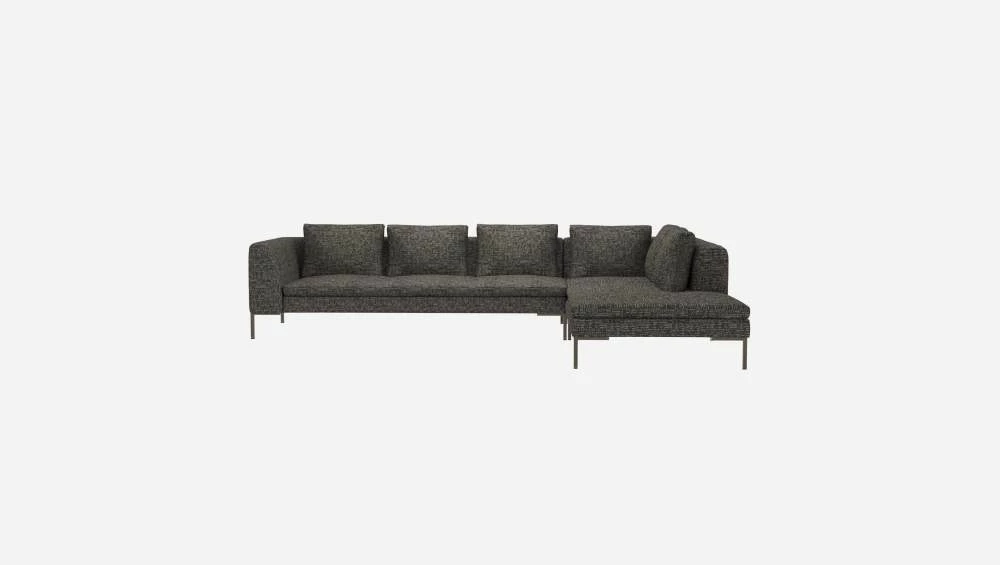 Le canapé 3 places avec méridienne droite Montino en tissu Alba gris nuage invite à la détente avec son assise moelleuse et ses accoudoirs hauts. Classiques et élégantes, ses lignes élancées et son design intemporel en feront la pièce maîtresse de votre salon.