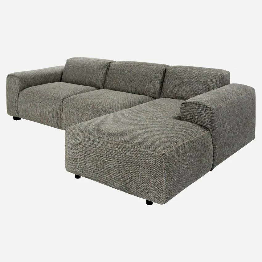 Le canapé 3 places Posada avec méridienne droite en tissu Bellagio gris nocturne est un canapé d’une grande élégance. Son design soigné se retrouve dans ses coutures et les finitions en ourlet de ses accoudoirs.