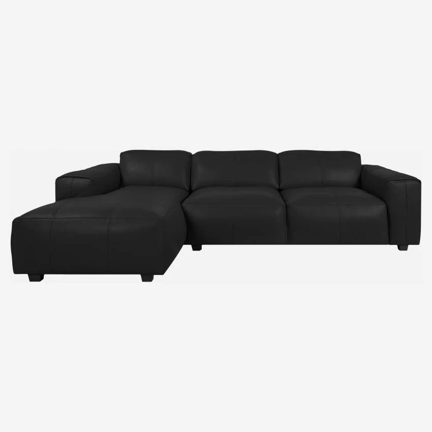 Habitat Canapé 3 Places Avec Méridienne Gauche En Cuir Savoy – Noir Obsidienne