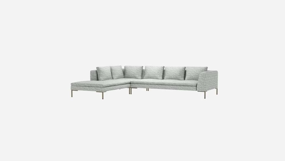 Le canapé 3 places avec méridienne gauche Montino en tissu Alba gris brume invite à la détente avec son assise moelleuse et ses accoudoirs hauts. Classiques et élégantes, ses lignes élancées et son design intemporel en feront la pièce maîtresse de votre salon.