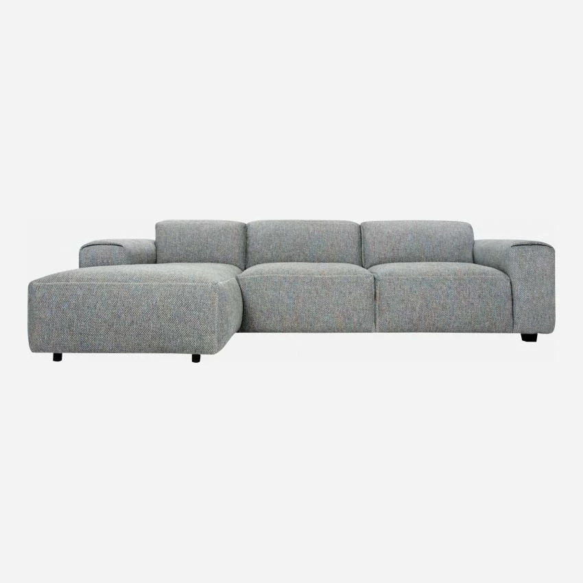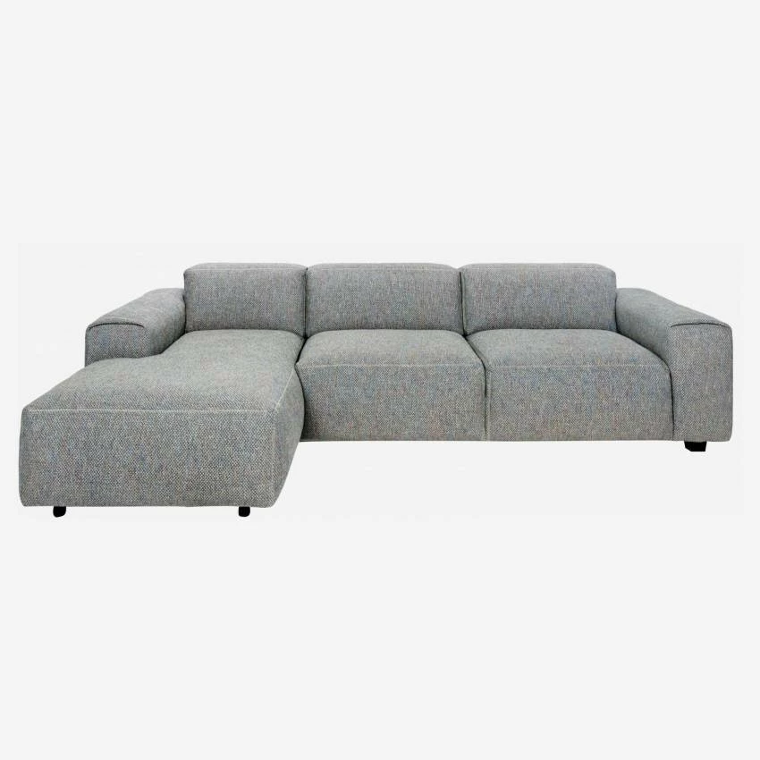 Le canapé 3 places Posada avec méridienne gauche en tissu Bellagio bleu céleste est un canapé d’une grande élégance. Son design soigné se retrouve dans ses coutures et les finitions en ourlet de ses accoudoirs.