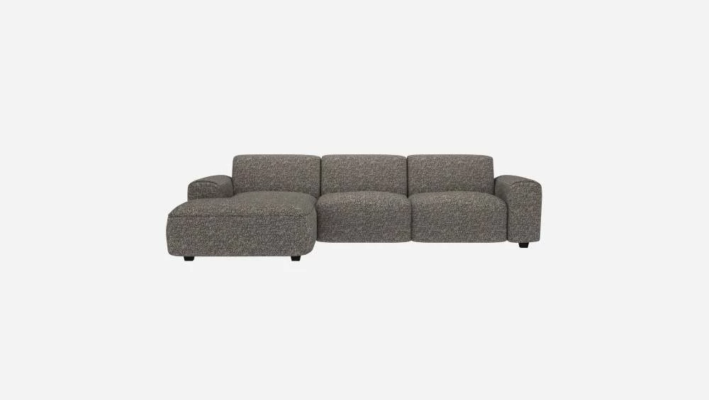 Le canapé 3 places Posada avec méridienne gauche en tissu Venezia bleu zingué est un canapé d’une grande élégance. Son design soigné se retrouve dans ses coutures et les finitions en ourlet de ses accoudoirs.