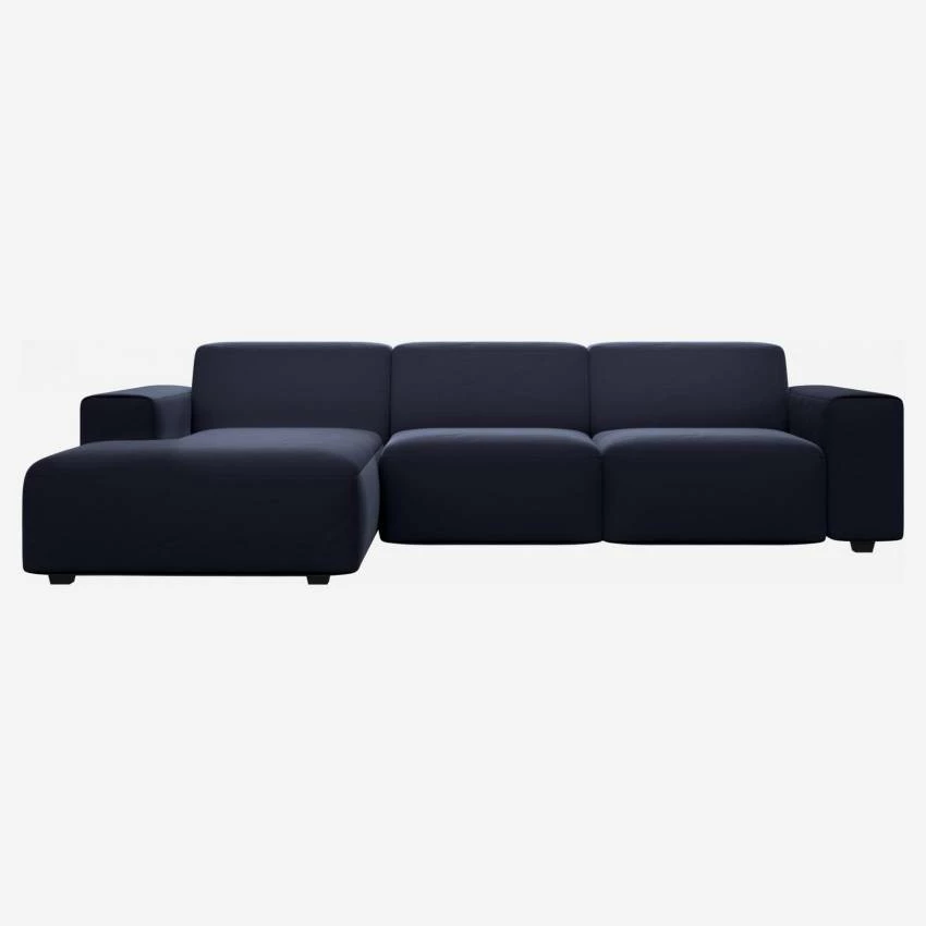 Habitat Canapé 3 Places Avec Méridienne Gauche En Velours – Bleu Encre