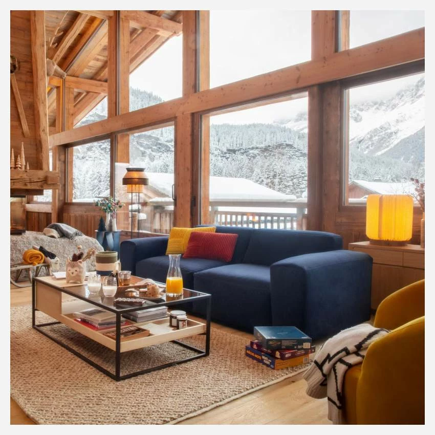 Le canapé 3 places Posada avec méridienne gauche en velours bleu encre est un canapé d’une grande élégance. Son design soigné se retrouve dans ses coutures et les finitions en ourlet de ses accoudoirs.