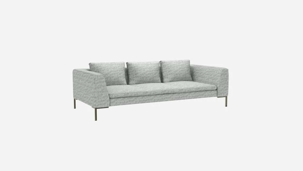 Le canapé 3 places Montino en tissu Alba gris brume invite à la détente avec son assise moelleuse et ses accoudoirs hauts. Classiques et élégantes, ses lignes élancées et son design intemporel en feront la pièce maîtresse de votre salon.