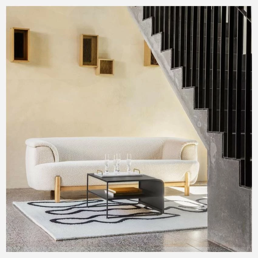 Fabriqué en Italie, le canapé 3 places Alberto de couleur blanc albâtre se pare d’un tissu haute qualité. Cette assise a été pensée pour être élégante de face comme de dos, « J’aime dessiner des objets autour desquels il est agréable de tourner » affirme son créateur, Anthony Guerrée.