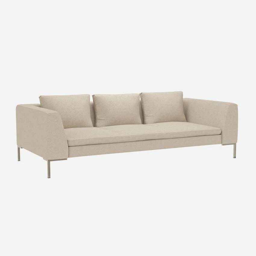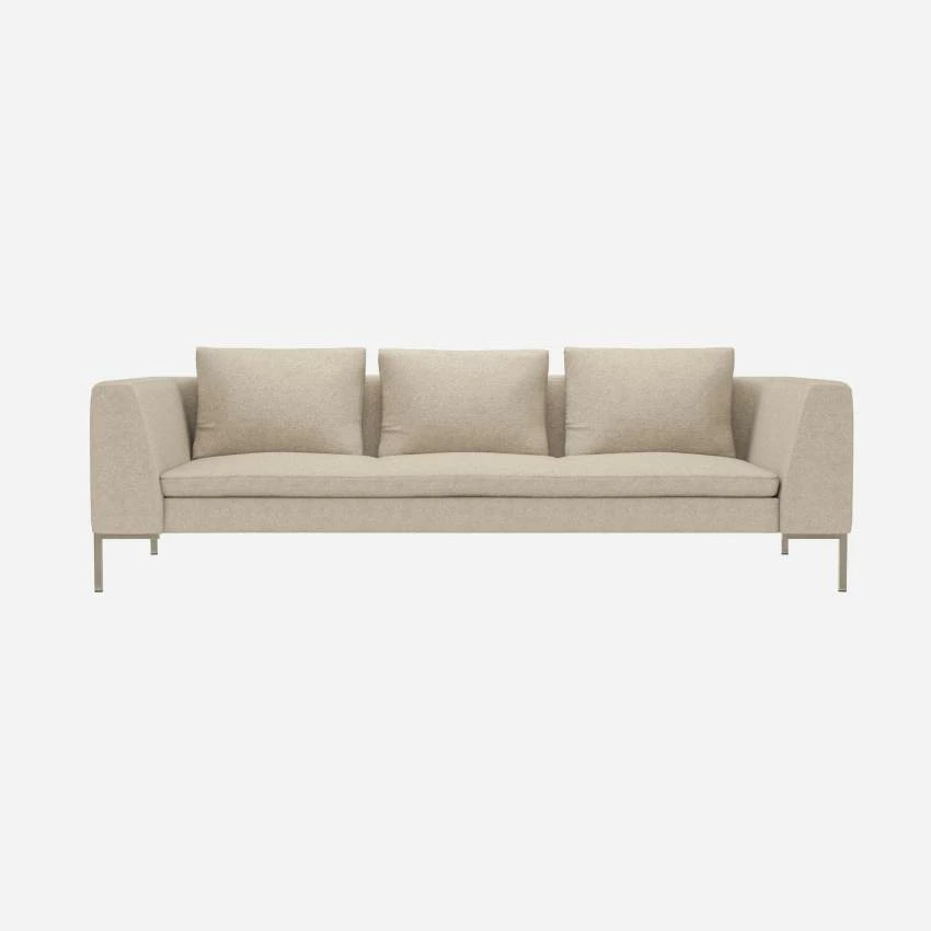 Le canapé 3 places Montino en tissu Lucca blanc mastic invite à la détente avec son assise moelleuse et ses accoudoirs hauts. Classiques et élégantes, ses lignes élancées et son design intemporel en feront la pièce maîtresse de votre salon.
