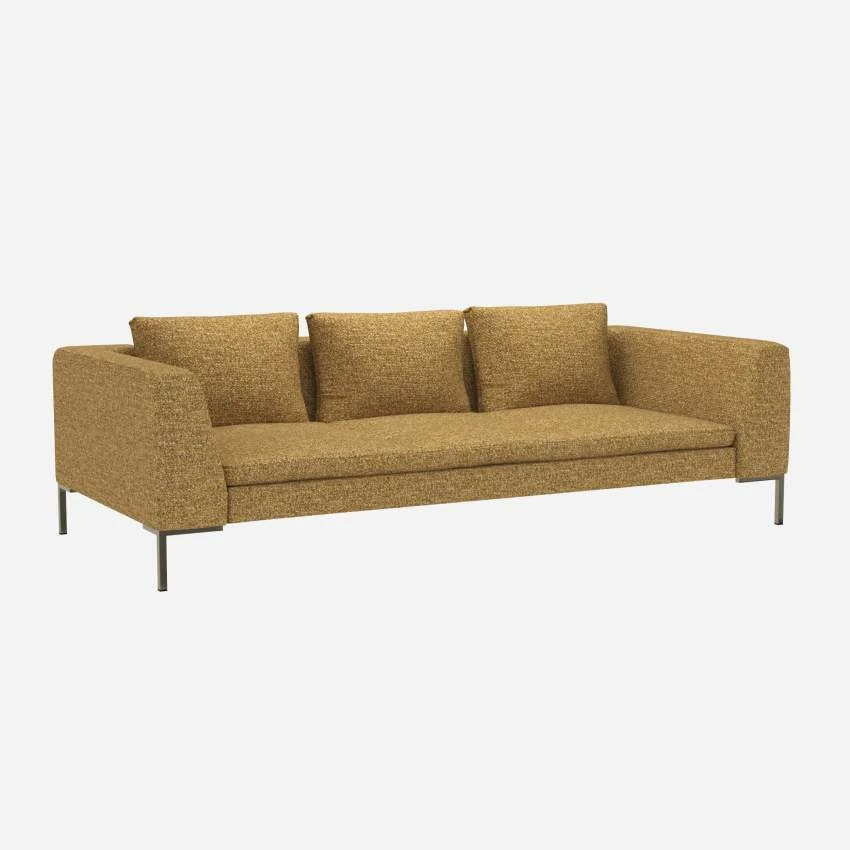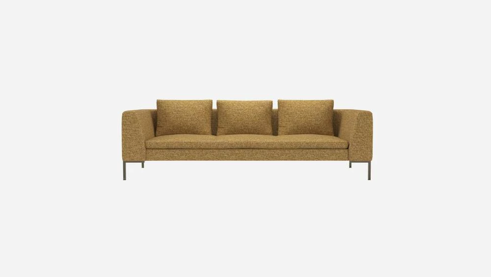 Le canapé 3 places Montino en tissu Venezia jaune épice invite à la détente avec son assise moelleuse et ses accoudoirs hauts. Classiques et élégantes, ses lignes élancées et son design intemporel en feront la pièce maîtresse de votre salon.