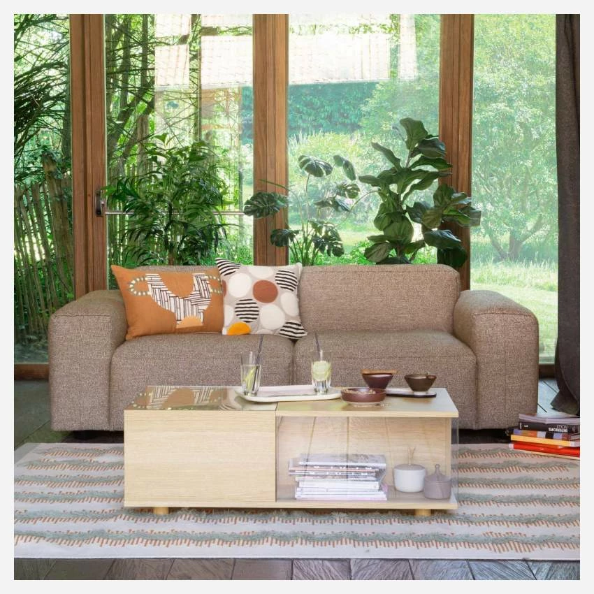 Disponible ici en tissu Venezia vert lichen , il existe aussi en différents coloris et d’autres revêtements. Le tissu Venezia est un textile exclusif Habitat, composé de polyester, de viscose, de coton et de lin.
