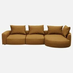 Le canapé d’angle droit Cagliari en tissu Copparo jaune moutarde se compose de deux blocs : un droit et une méridienne de forme organique. Sa profondeur d’assise de 60 cm est une invitation au cocooning. Ses coussins de dossier sont en plumes et mousse pour vous offrir un moelleux confortable et relaxant. Ce canapé existe également dans une version angle droit organique. Il se combine aussi avec la chauffeuse de la même gamme.