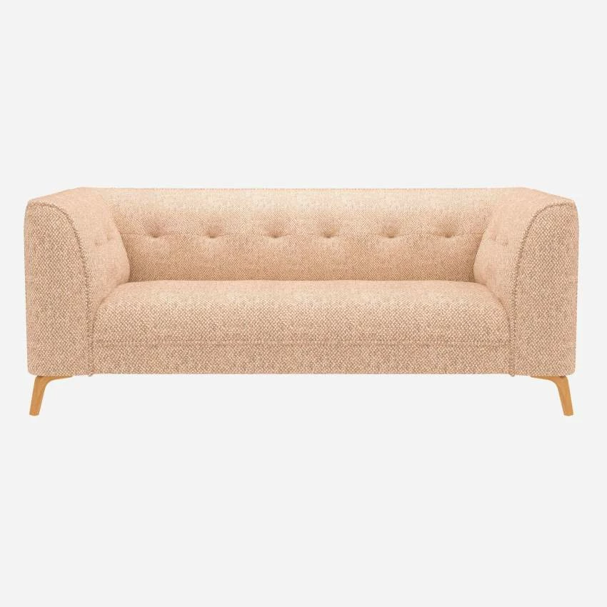 Recouvert d’un revêtement en tissu Bellagio orange aurore , le canapé Cossano 2 places se personnalise à l’envie pour se fondre dans votre décoration ou au contraire donner le ton. Avec son élégant dossier capitonné, il peut se placer au centre de la pièce. Pour plus de confort vous pouvez l’accompagner d’un repose-pieds.