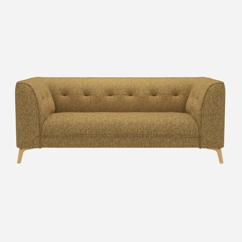 Recouvert d’un revêtement en tissu Venezia jaune épice , le canapé Cossano 2 places se personnalise à l’envie pour se fondre dans votre décoration ou au contraire donner le ton. Avec son élégant dossier capitonné, il peut se placer au centre de la pièce. Pour plus de confort vous pouvez l’accompagner d’un repose-pieds.