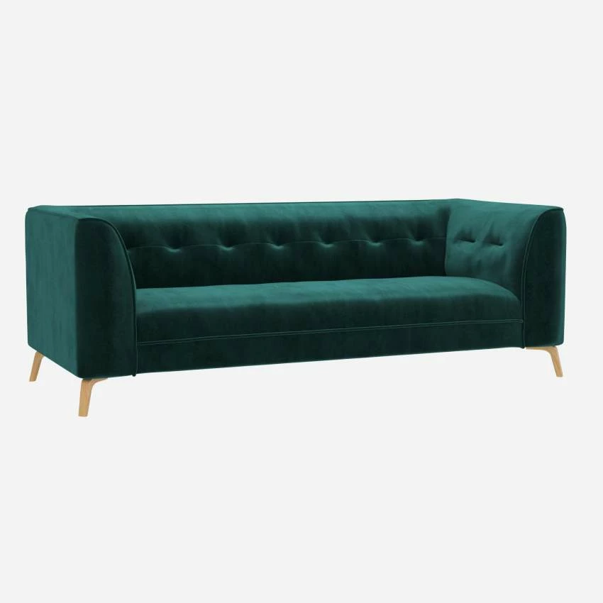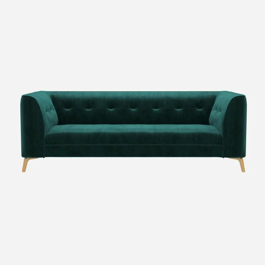 Habitat Canapé Droit 3 Places En Velours – Vert émeraude