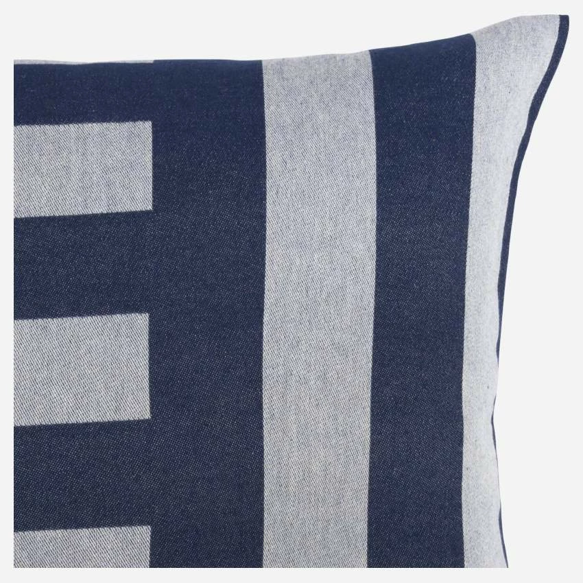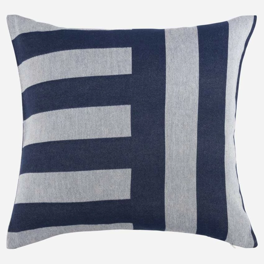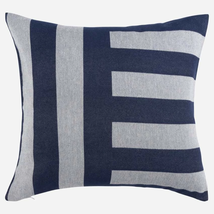 Fabriqué au Portugal, le coussin Ulvi à rayures bleues est en coton peigné et son garnissage est en matériaux recyclés. Le coton peigné est un traitement qui consiste à éliminer les fibres courtes et à garder les plus longues. L’avantage ? Garder le meilleur du coton en le rendant encore plus doux et agréable au toucher.