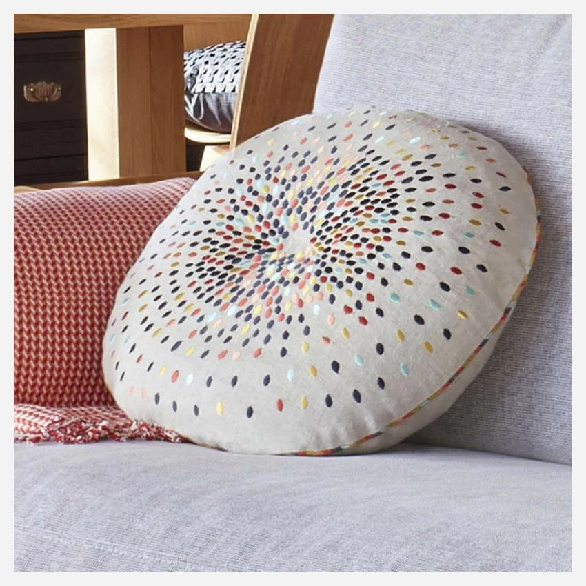Habitat Coussin Rond En Lin – 45 X 45 Cm – Motif