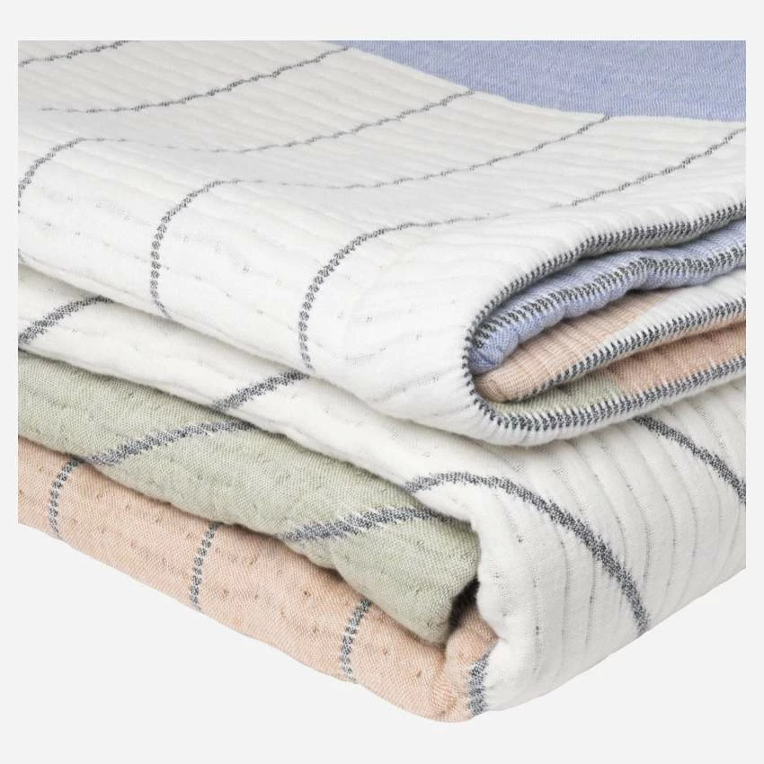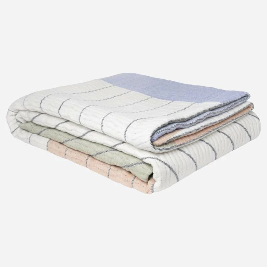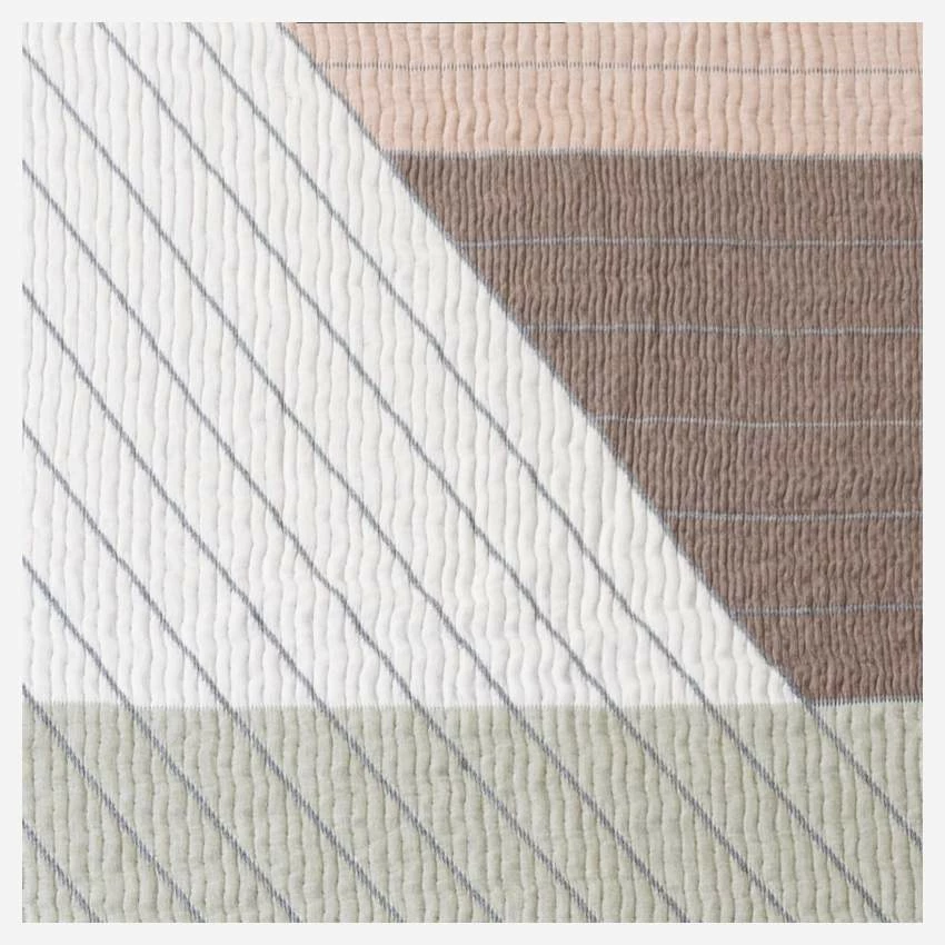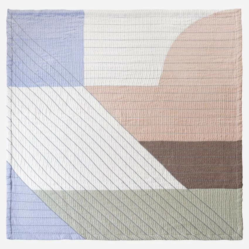 Le dessus de lit Amélie est en 100% coton ; il est fabriqué au Portugal. Il se compose de formes géométriques juxtaposées à la manière d’un patchwork.