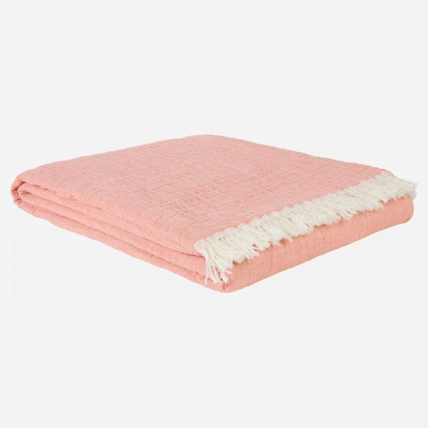 Le dessus de lit réversible Nebula corail et beige est en 100% coton.