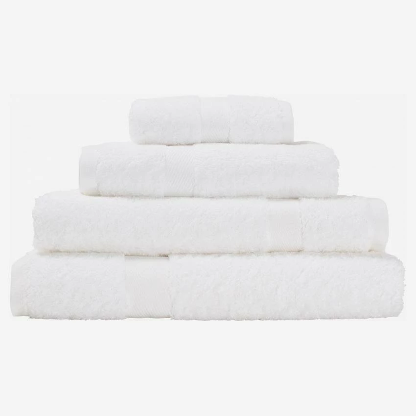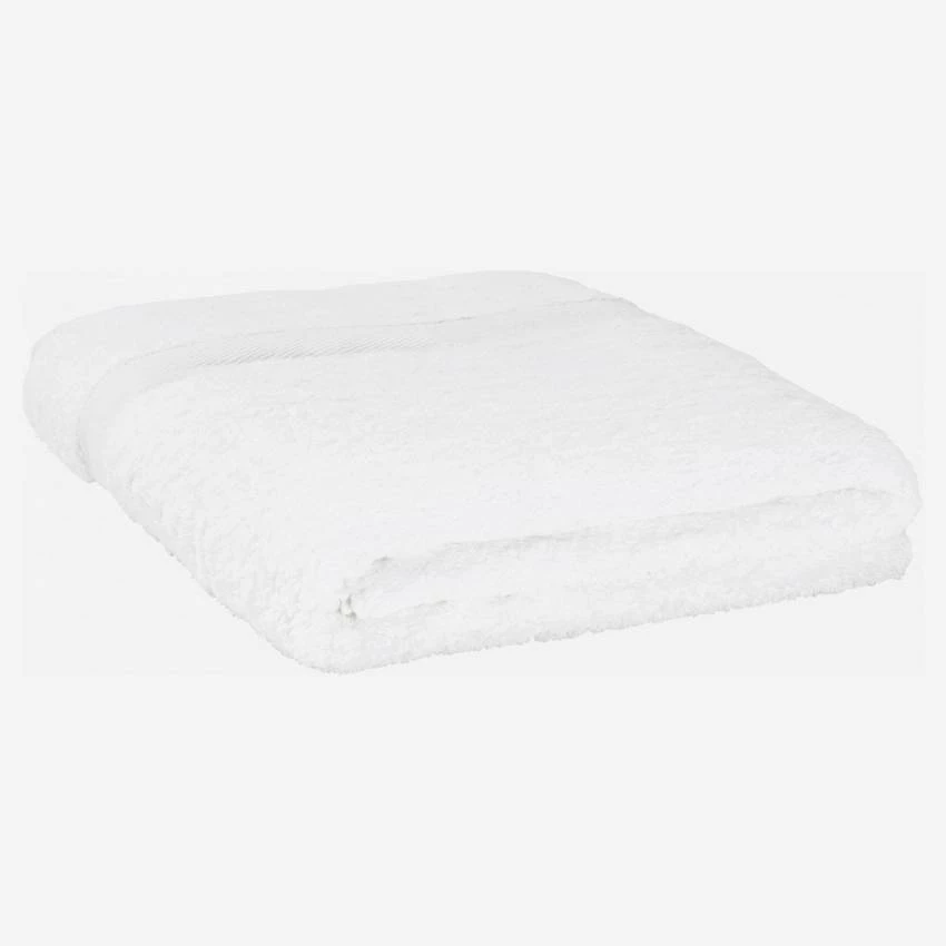 Le drap de bain Naxos existe en plusieurs coloris. Il est proposé ici en blanc.