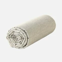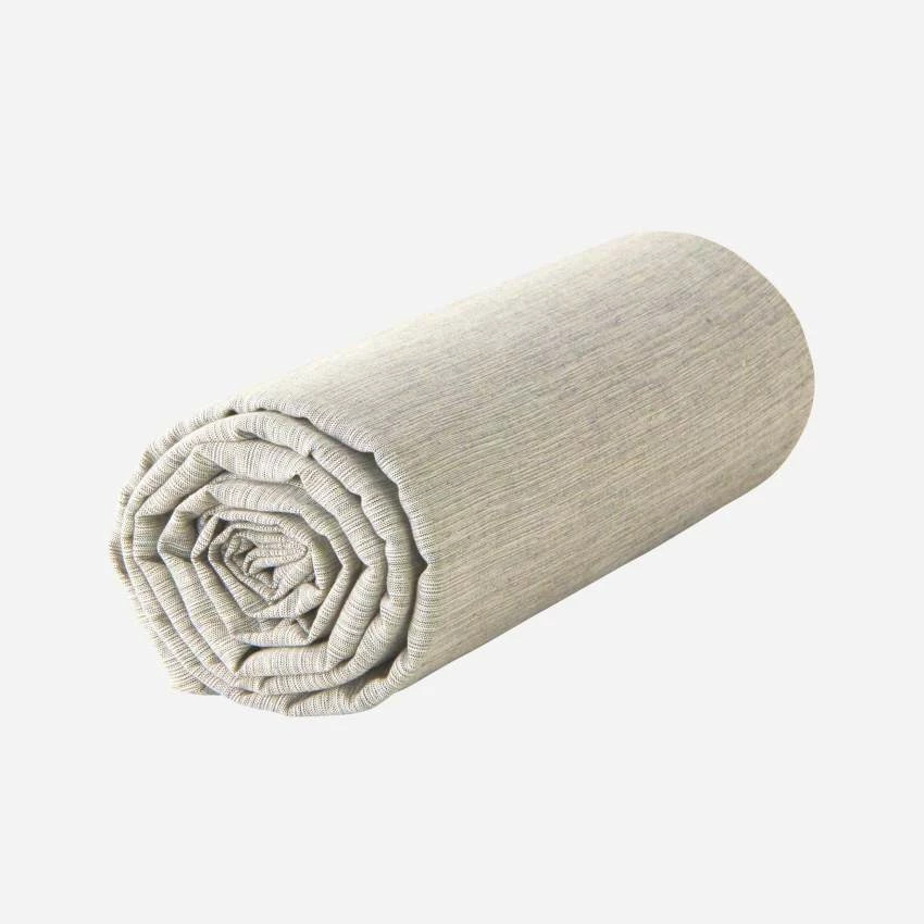 Le drap housse Skye en coton est compatible avec les matelas de 180 x 200 cm. De couleur beige et vert clair, il se compose de fils de différentes nuances.