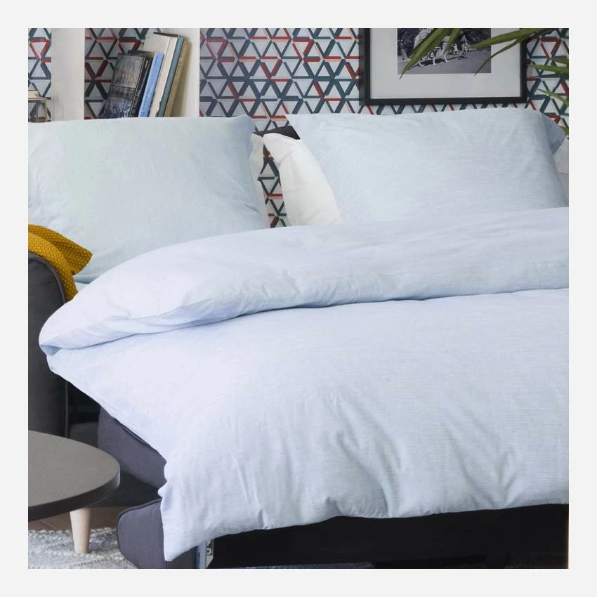 Le drap housse Linen II est adapté aux matelas de 140 x 200 cm et mesurant entre 16 et 26 cm de haut. De couleur bleu clair, il vous enveloppe de douceur au moment du coucher.