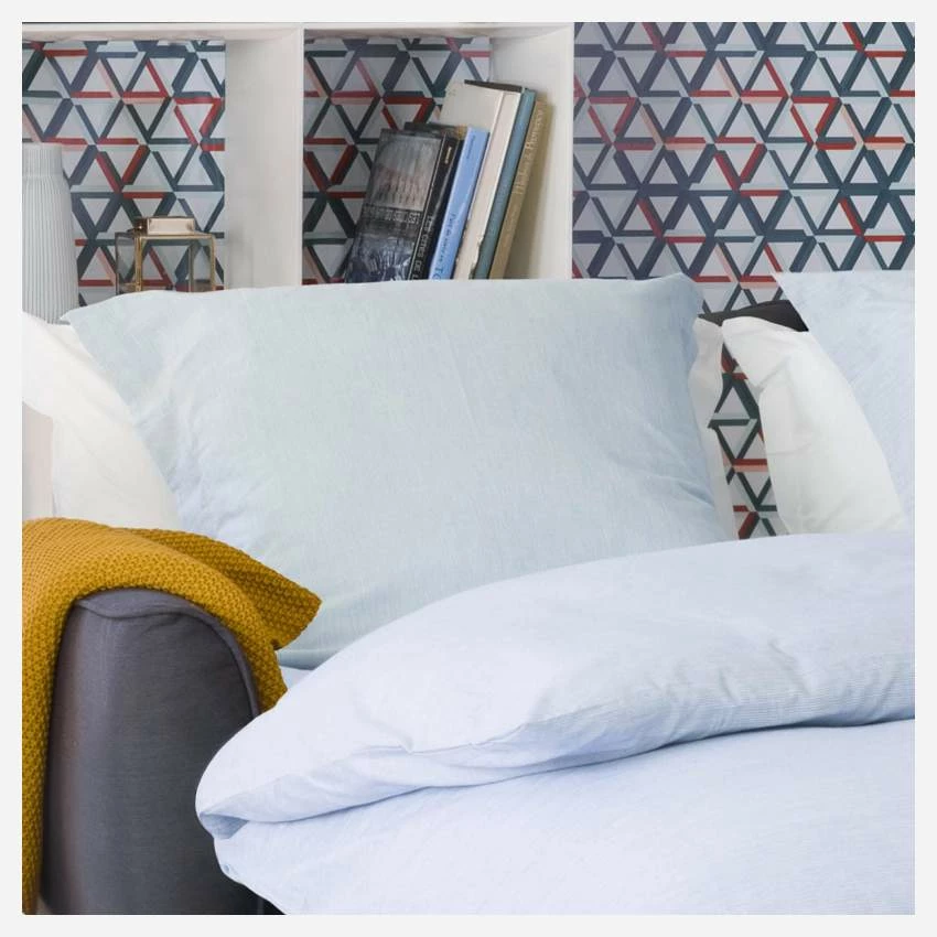 Tout en lin, la gamme Linen II est une collection de textile Habitat. Elle se décline en linge de lit (drap, housse de couette, taie d’oreiller) mais aussi en coussin. Le lin est une matière noble qui assure douceur, confort, et durabilité.