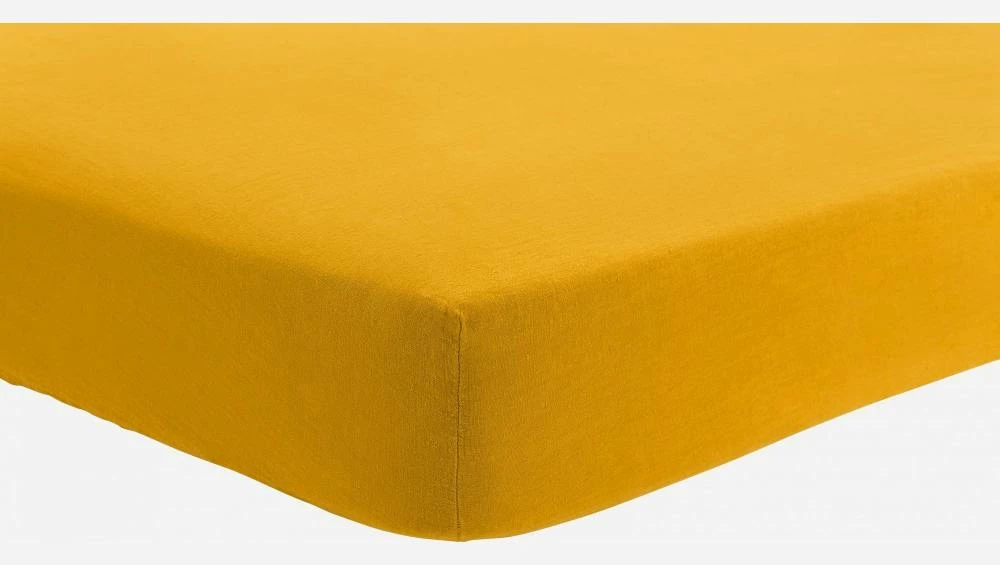 Le drap housse Linen II est adapté aux matelas de 160 x 200 cm et mesurant entre 16 et 26 cm de haut. De couleur jaune moutarde, il vous enveloppe de douceur au moment du coucher.