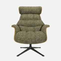 Le fauteuil Marc en chêne et tissu Alba vert orage avec pied noir offre un confort ultime, grâce à son dossier inclinable et à sa têtière ajustable en hauteur.