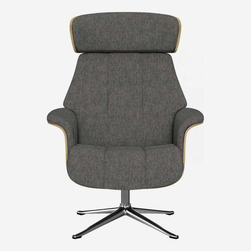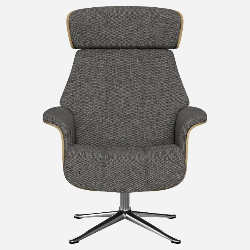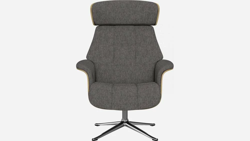 Le fauteuil Marc en chêne et tissu Bellagio gris nocturne avec pied aluminium offre un confort ultime, grâce à son dossier inclinable et à sa têtière ajustable en hauteur.