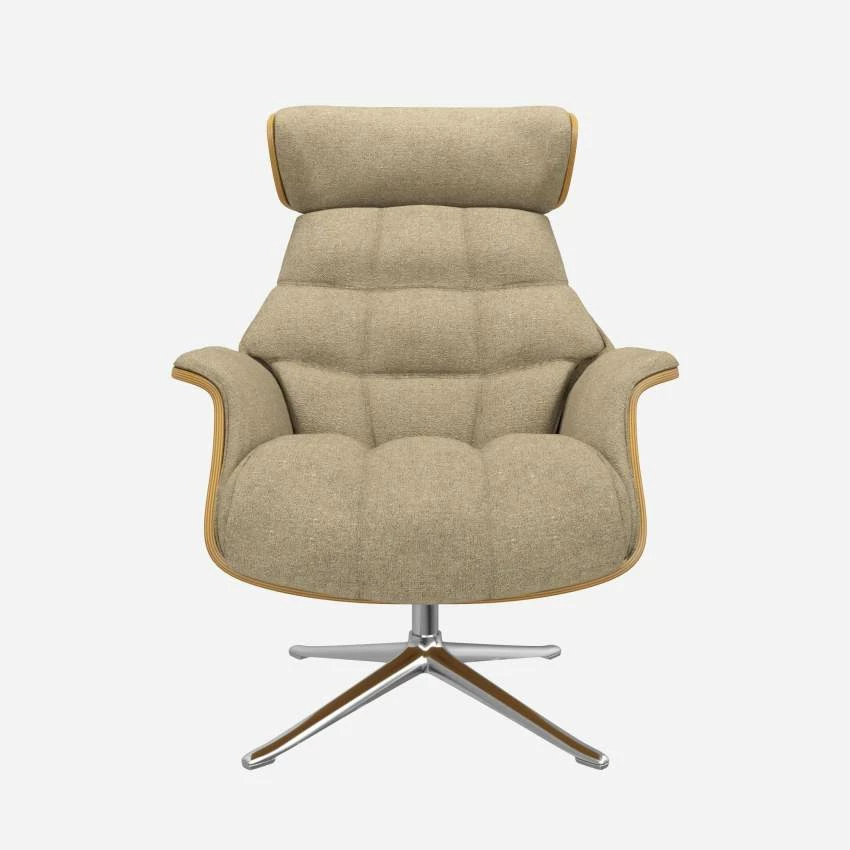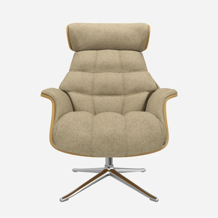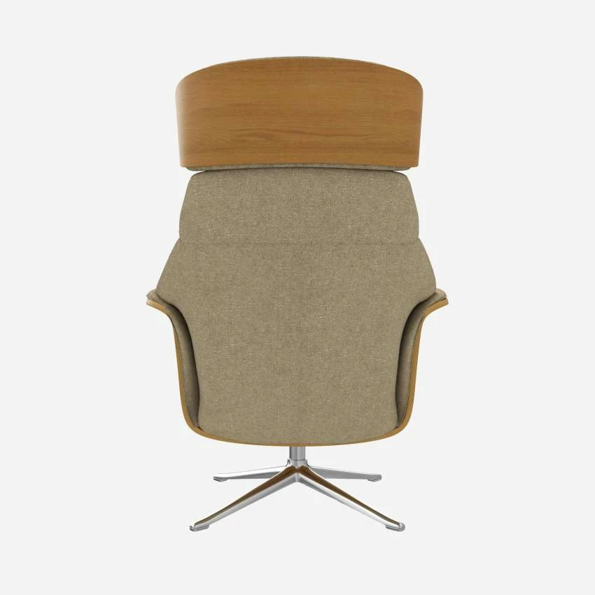 Le fauteuil Marc en chêne et tissu Lucca blanc mastic avec pied aluminium offre un confort ultime, grâce à son dossier inclinable et à sa têtière ajustable en hauteur.