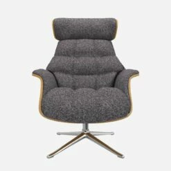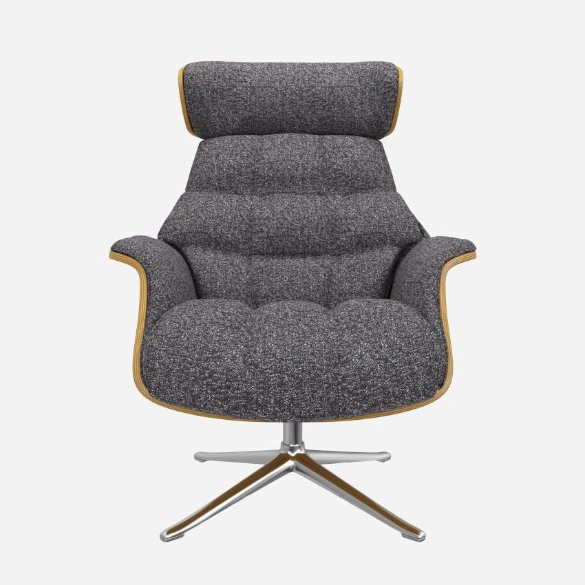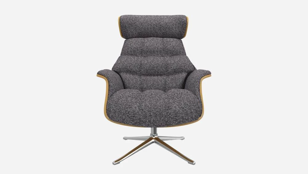 Le fauteuil Marc en chêne et tissu Lucca bleu zingué avec pied aluminium offre un confort ultime, grâce à son dossier inclinable et à sa têtière ajustable en hauteur.