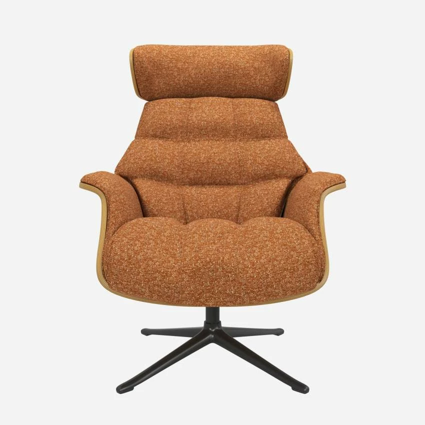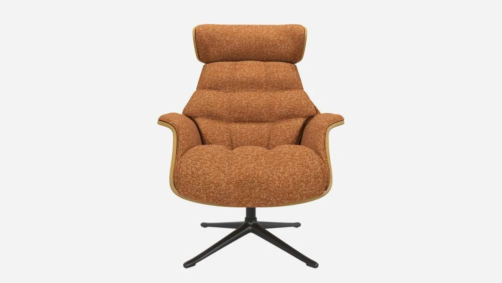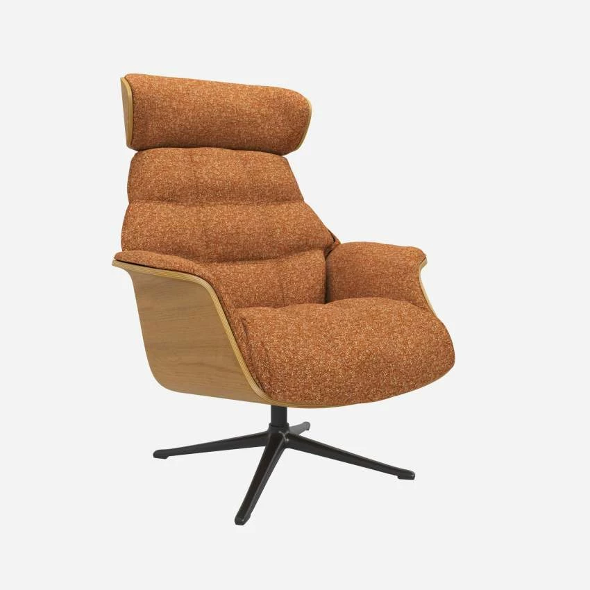 Le fauteuil Marc en chêne et tissu Lucca marron noisette avec pied noir offre un confort ultime, grâce à son dossier inclinable et à sa têtière ajustable en hauteur.