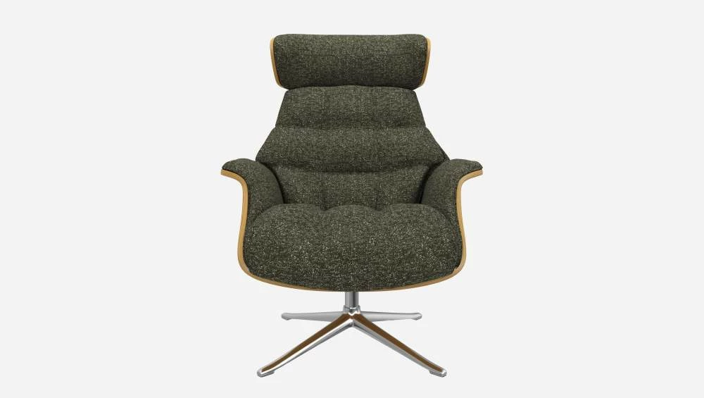Habitat Fauteuil En Chêne Et Tissu Lucca – Vert Mousse – Pied Aluminium