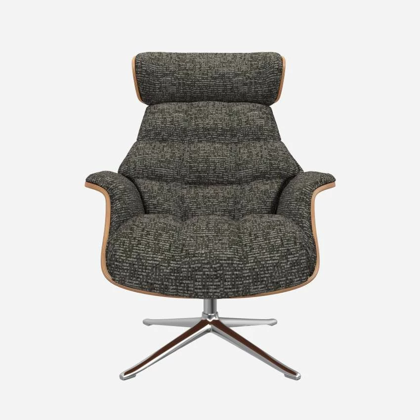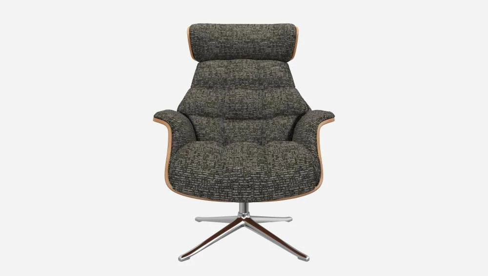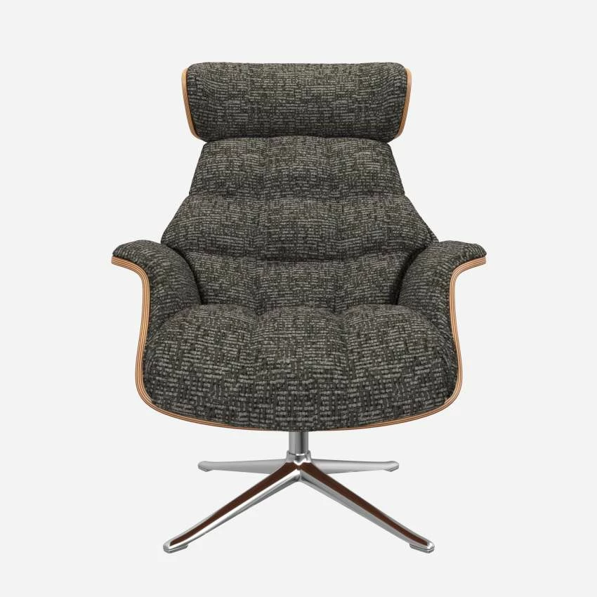 Le fauteuil Marc en noyer et tissu Alba gris nuage avec pied aluminium offre un confort ultime, grâce à son dossier inclinable et à sa têtière ajustable en hauteur.