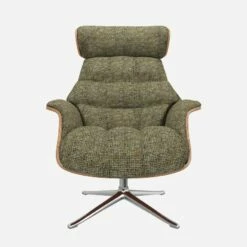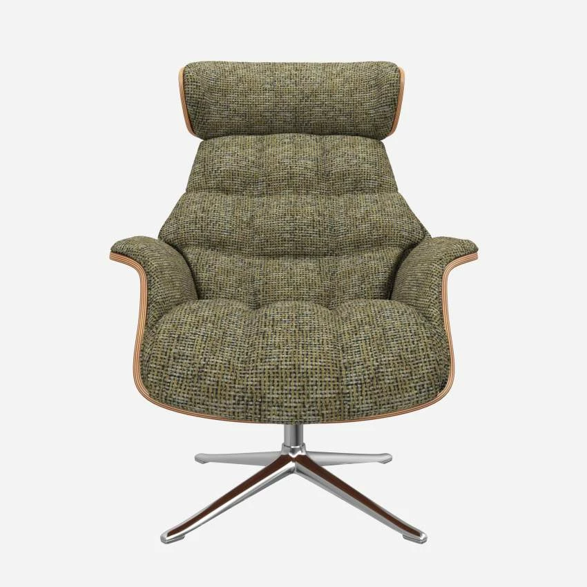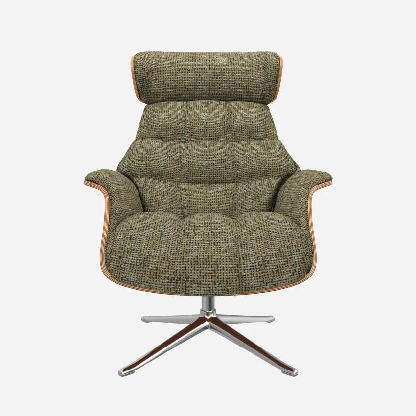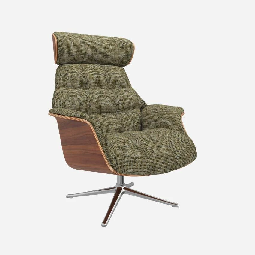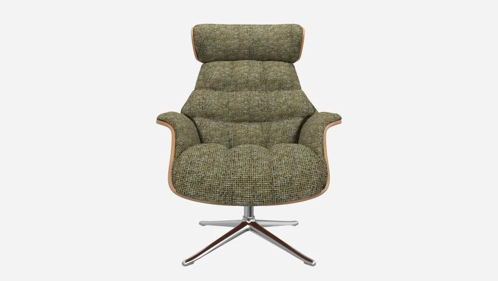 Le fauteuil Marc en noyer et tissu Alba vert orage avec pied aluminium offre un confort ultime, grâce à son dossier inclinable et à sa têtière ajustable en hauteur.