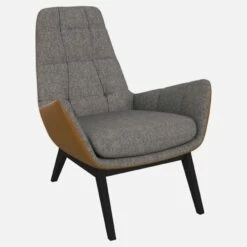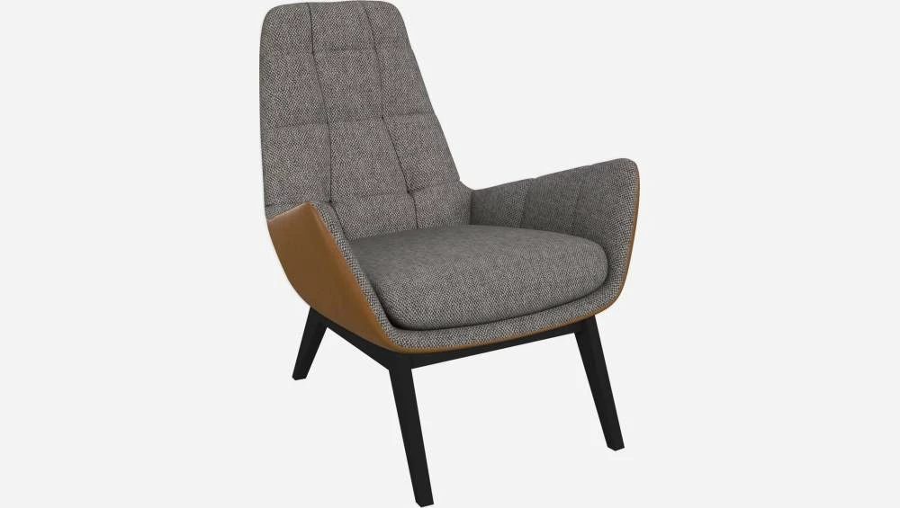 Habitat Fauteuil En Tissu Bellagio Gris Nocturne Et Cuir Vintage – Pieds Noirs