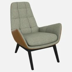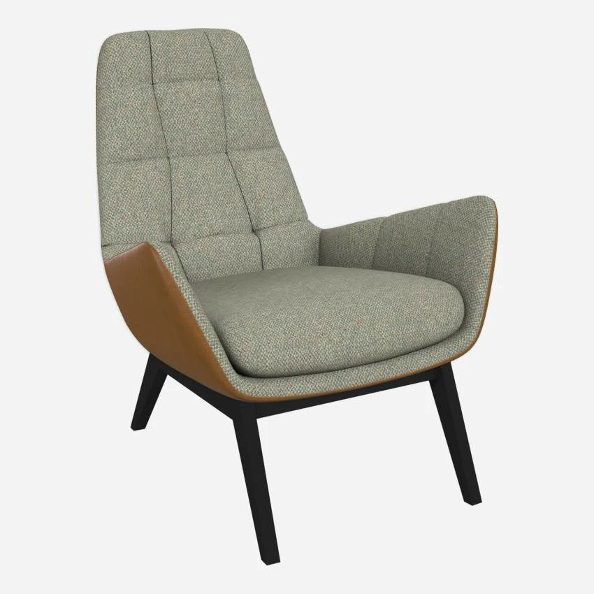 Habitat Fauteuil En Tissu Bellagio Vert Lagon Et Cuir Vintage – Pieds Noirs