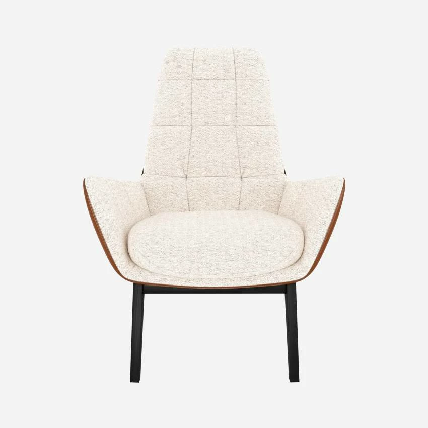 Le fauteuil Dena en tissu Bormio blanc albâtre et cuir Vintage avec pieds noirs invite au repos et à la détente. Son design arbore des courbes enveloppantes. Il possède un dossier haut et matelassé. Ce dernier est composé d’un mélange de mousse et de plumes. Très confortable, ce fauteuil design est parfait pour les instants de lecture.