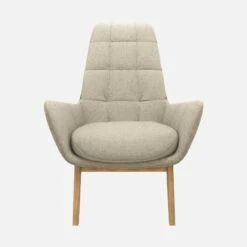 Habitat Fauteuil En Tissu Lucca – Blanc Mastic – Pieds Chêne