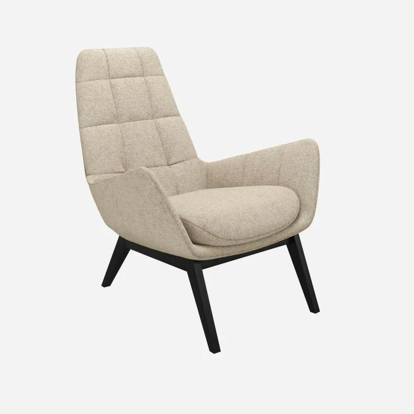 Habitat Fauteuil En Tissu Lucca – Blanc Mastic – Pieds Noirs